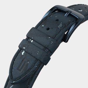 - Vegan paper leather strap, made from cellulose, latex and cork are comfortable, durable, and can be swapped quickly thanks to the quick-release mechanism.