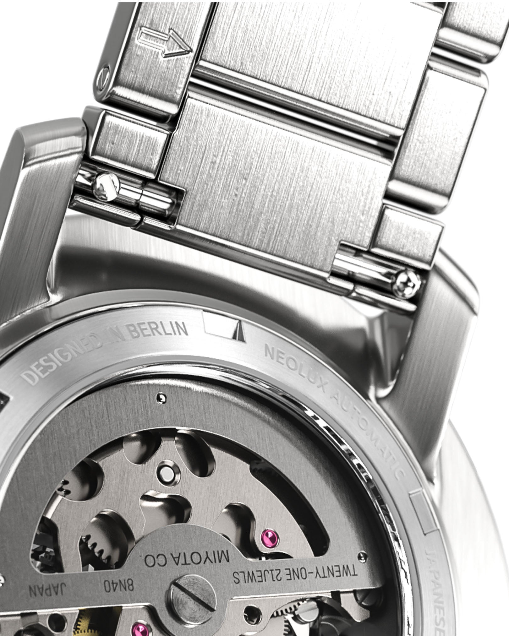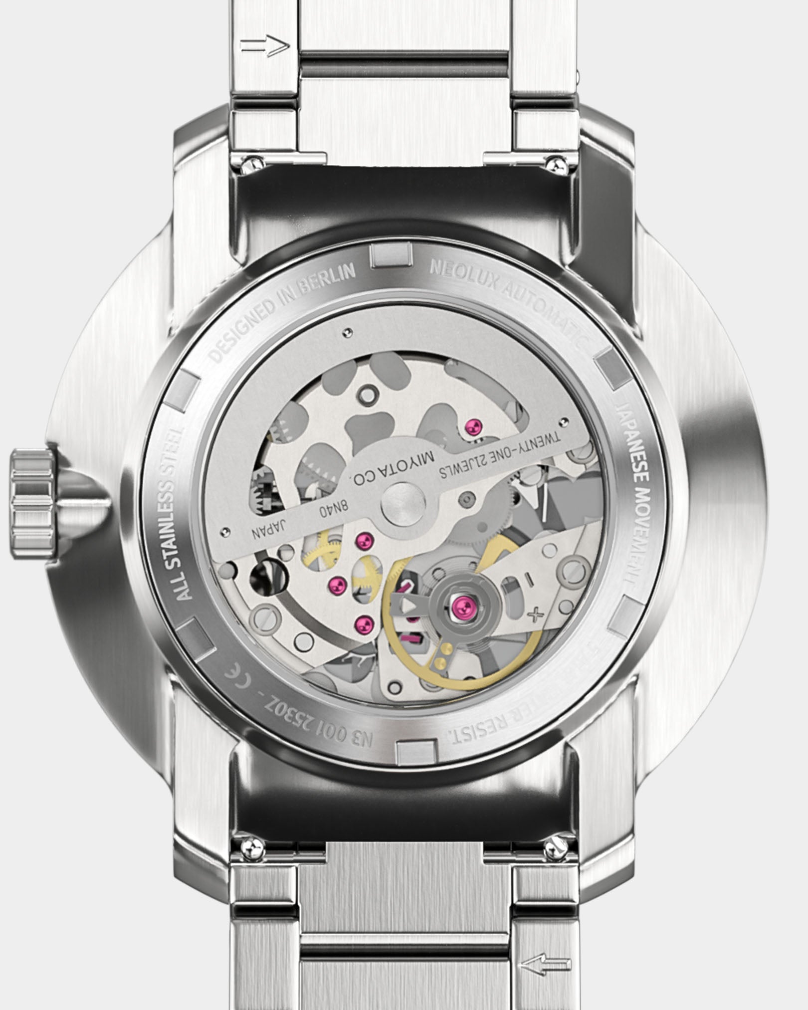• Savoir-faire Horloger Japonais : Le mouvement Miyota 8N40 est intégré avec 21 rubis, une réserve de marche allant jusqu'à 42 heures et une petite seconde décentrée.