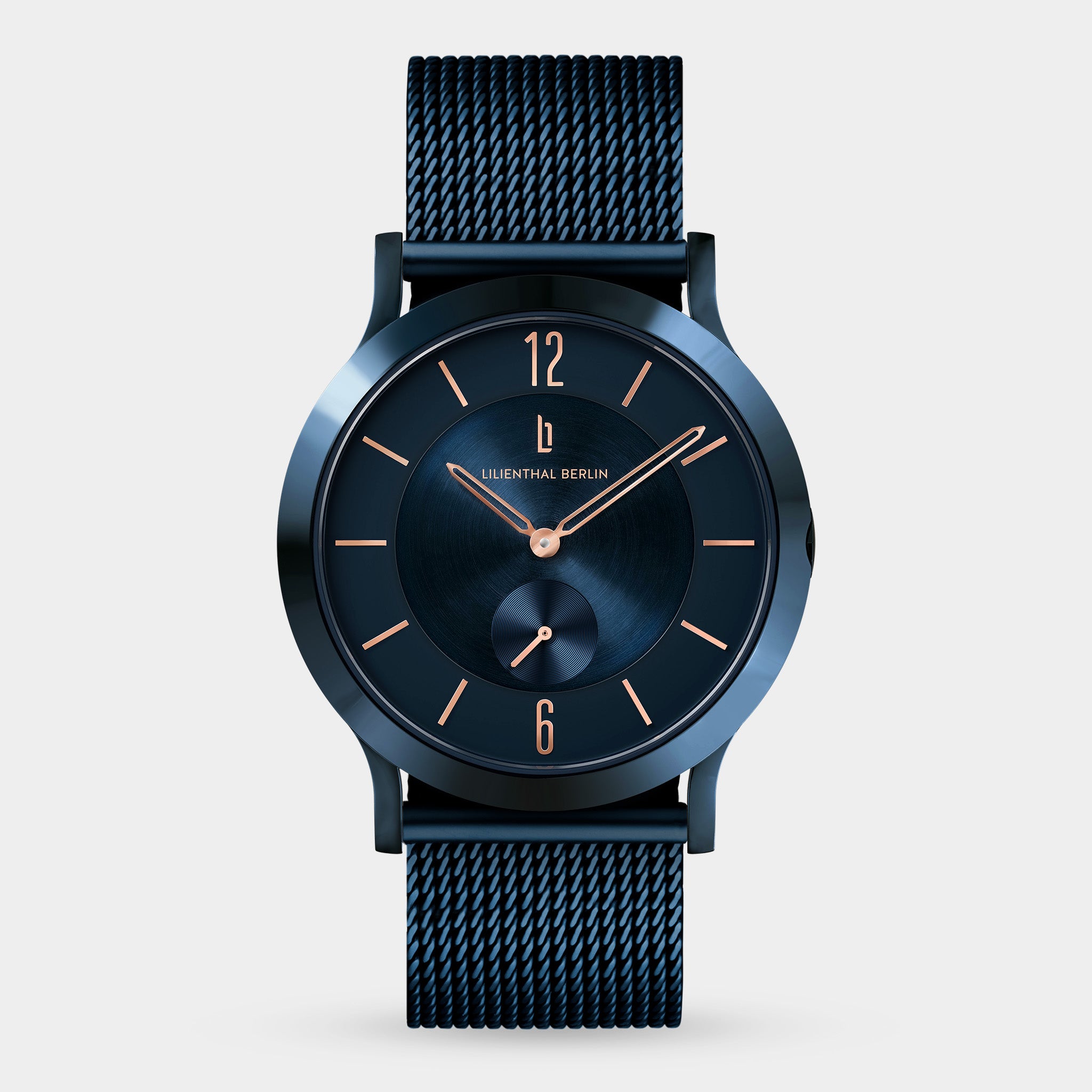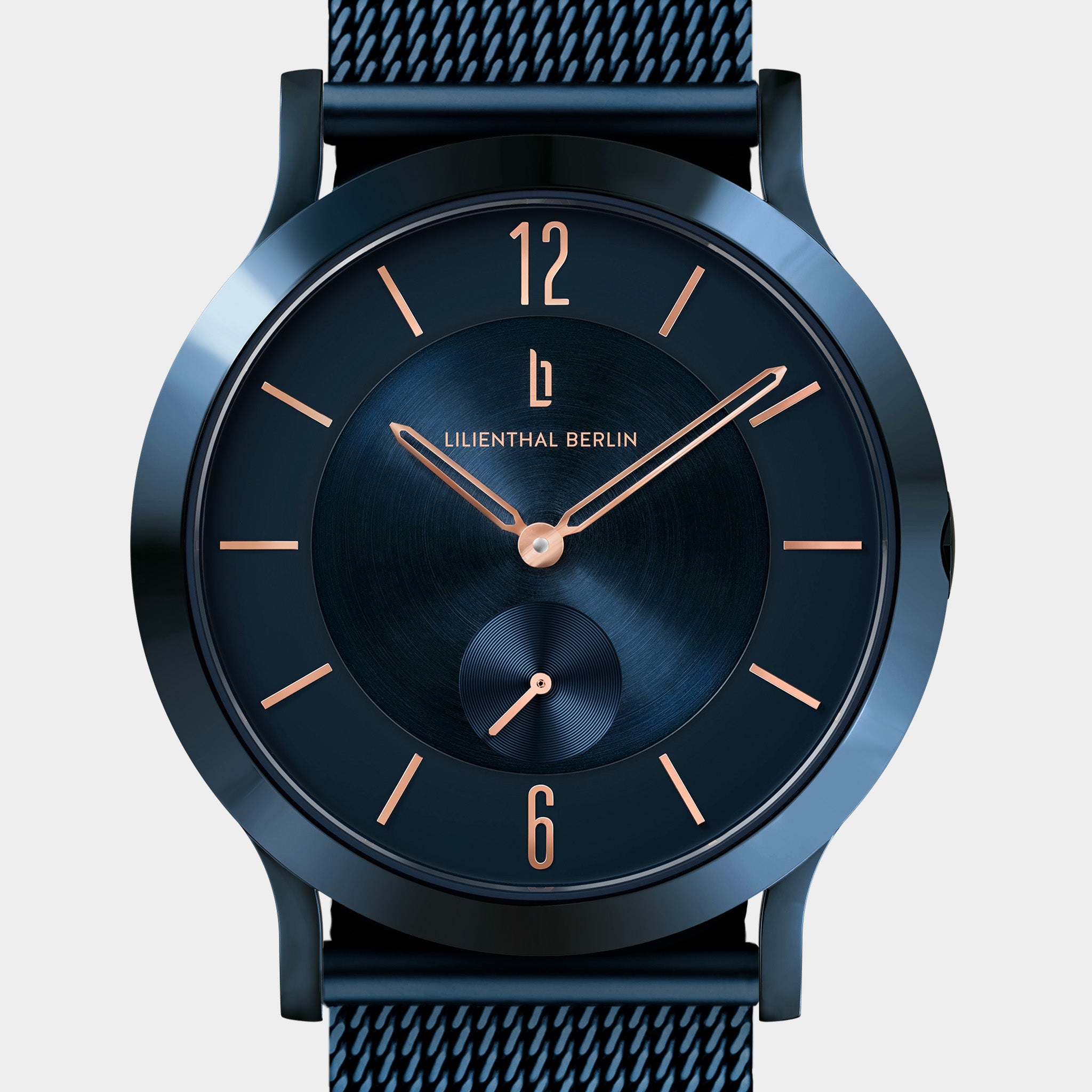 • Tijdloos ontwerp: De gepolijste kast en de wijzerplaat zijn diepblauw. Roségouden accenten zoals de slanke indexen en de cijfers op de posities 12 en 6 voegen een moderne en tegelijkertijd tijdloze uitstraling toe.