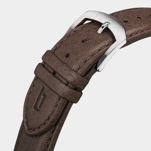- De veganistische papieren leren band, gemaakt van cellulose, latex en kurk, is comfortabel, duurzaam en kan dankzij het quick-release mechanisme snel worden verwisseld.